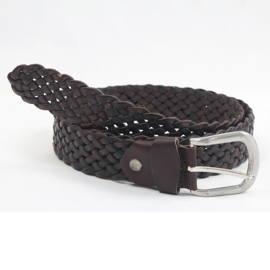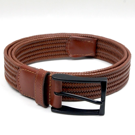 Men's Braided Woven Leather CasualJeans Belt with Solid Strap Single Prong Buckle 35-D19145